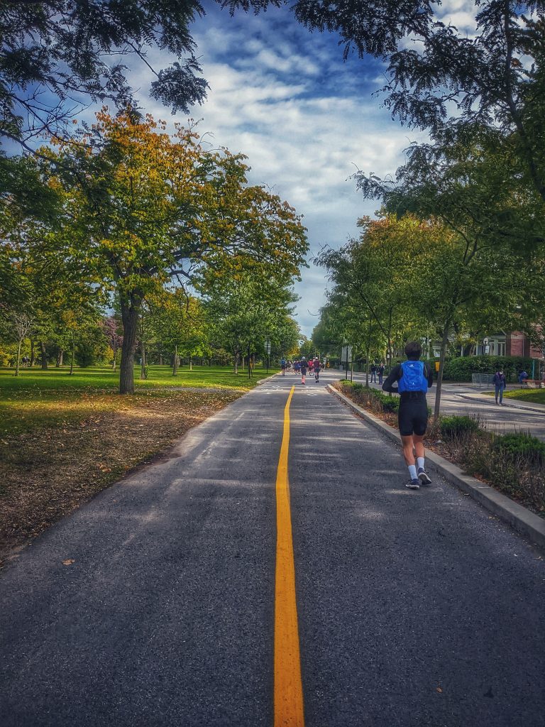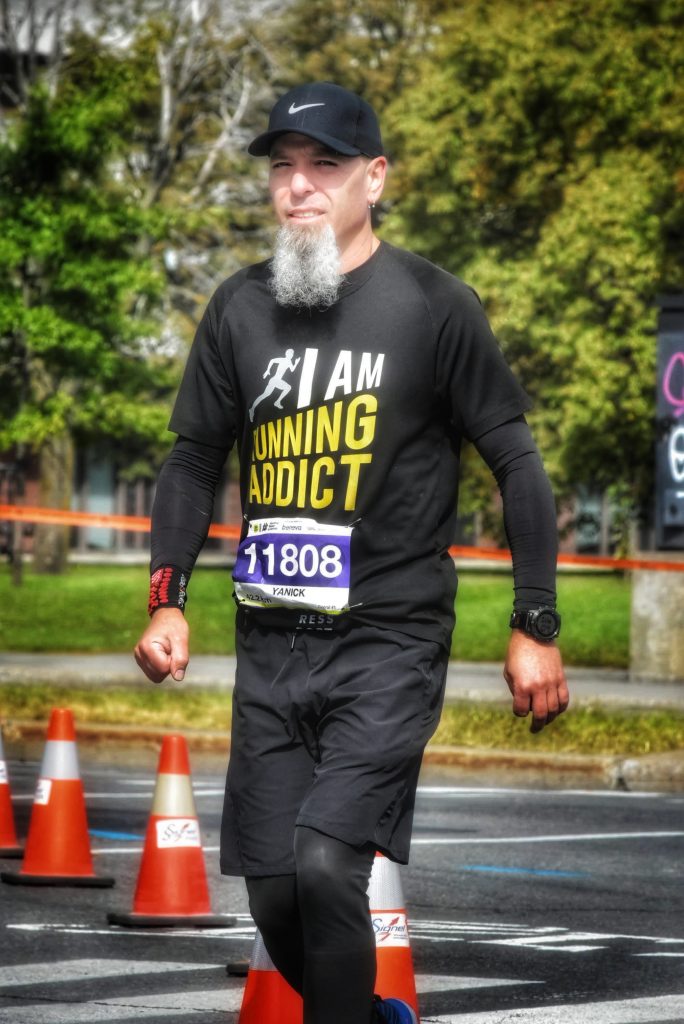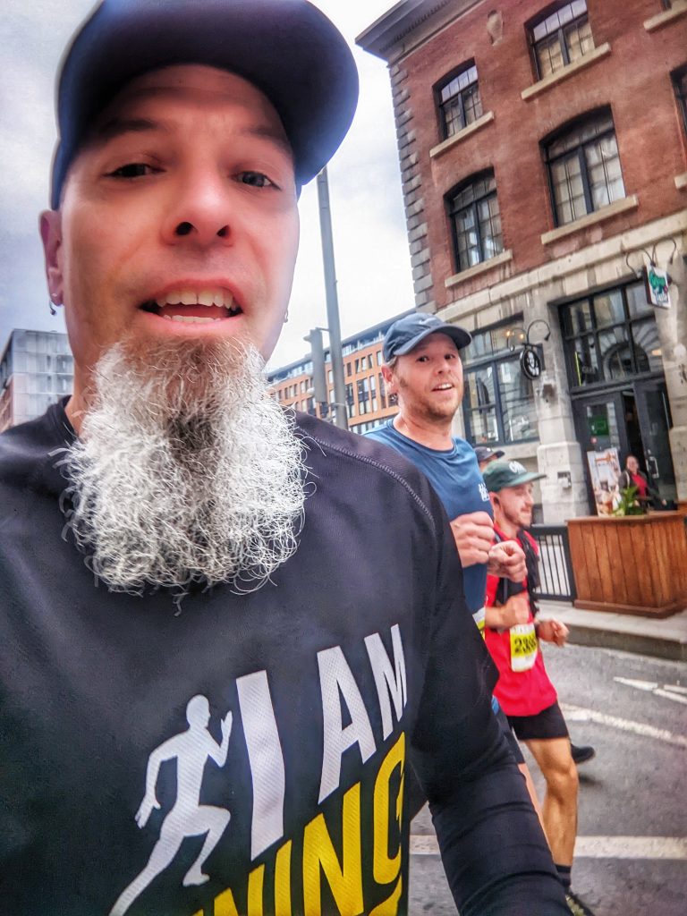 Puis finalement nous sommes arrivés à une intersection où les gens du demi tournaient à droite, puis les gens du marathon complet allaient plutôt vers la gauche, alors j’étais vraiment soulagé. Et sans hésitation aucune, j’ai pris vers la gauche, question de m’engouffrer dans ce défi hors norme.