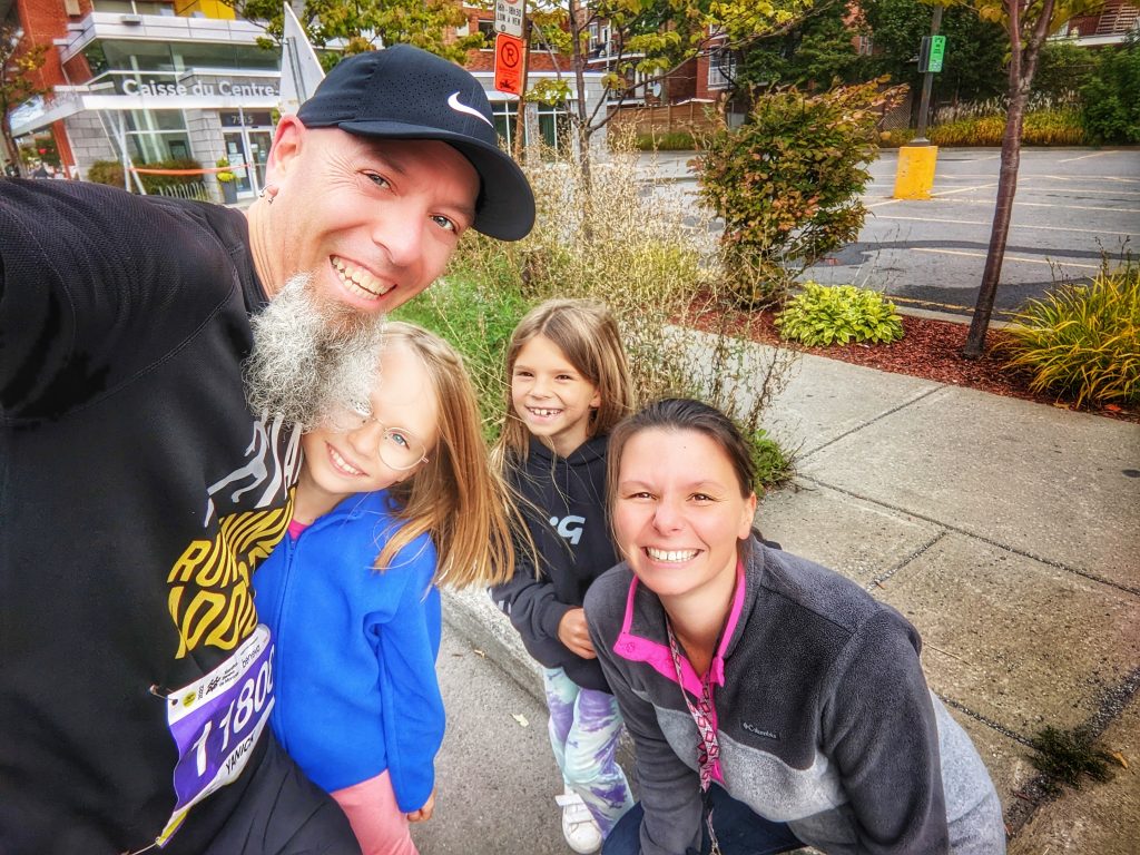 Enfin, disons que la petite voix n’a pas trop perduré, c’est qu’il y avait tellement de gens qui nous criaient que nous étions les meilleurs, que nous étions inspirants, que nous étions des champions, et j’en oublie certainement, que la question a laissé place à de la gêne de devoir m’arrêter de plus en plus souvent. Tellement, que j’avais l’impression de répéter mon tout premier marathon.