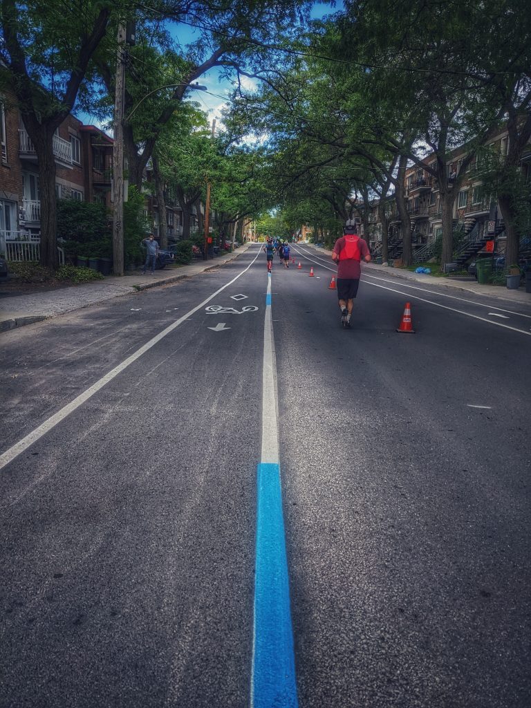 Rendu là, il y avait nettement moins de coureurs, avec une allure pour le moins beaucoup plus adaptée à celle que j’aurais dû avoir depuis le début, mais aussi encore beaucoup de gens pour nous encourager, surtout aux intersections, c’était tout à fait magique !