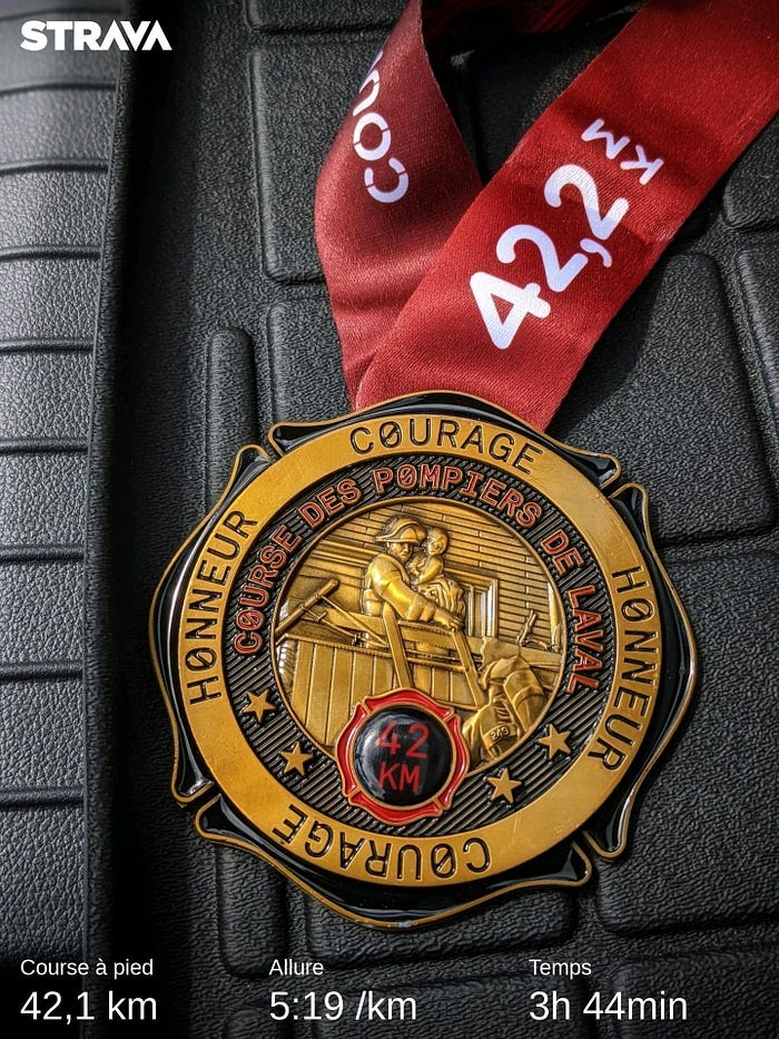 C’est après avoir réussi mon premier marathon en solo, à l’automne 2021, que j’ai pris la décision de transformer mon demi-marathon des pompiers de Laval en marathon complet, question d’avoir toujours un objectif clair et précis à atteindre, et je n’allais pas être déçu de ma décision.